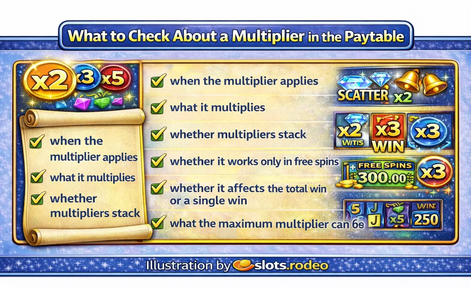 Understanding multiplier guidelines in the paytable