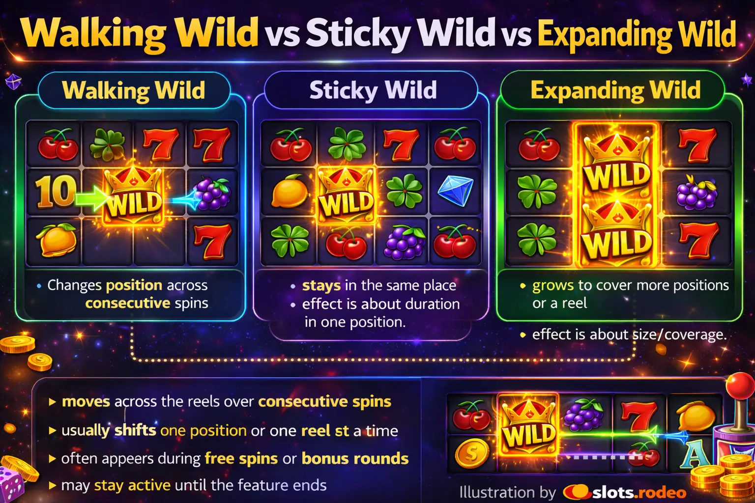 Walking wild vs sticky wild vs expanding wild