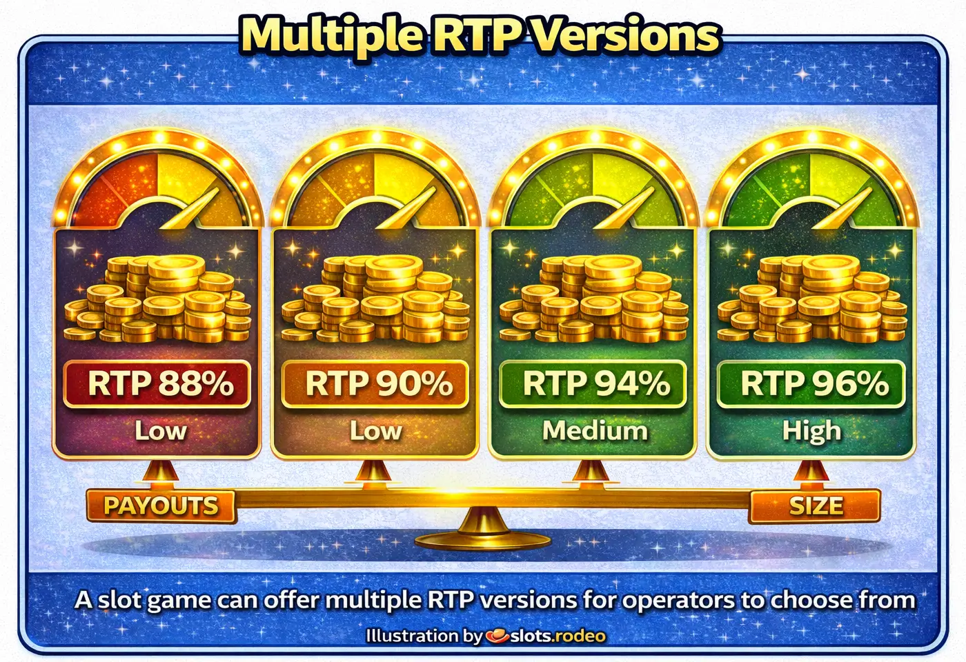 Some slot games are launched withvarious RTP configurations.The version available to a player may depend on the operator's configuration of the game. As a player: