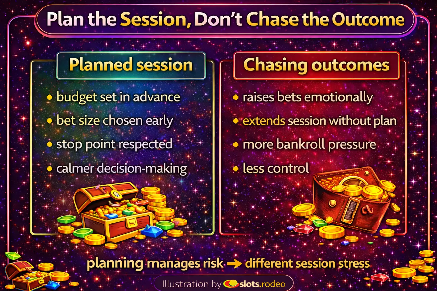 Session planning manages risk prior to the start of play. Chasing results typically heightens pressure after issues have already arisen.